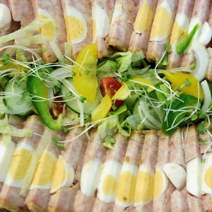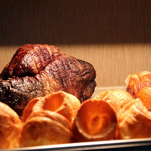 With freshly roasted meats, roast and new potatoes, yorkshire puddings, and lashings of homemade gravy.