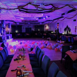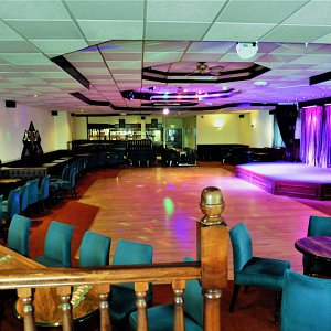 The Churchill Suite is our most popular function room and can comfortably accommodate up to 180 people for your function. It has a central dance floor with raised and floor-level seating surrounding it. The stage is large enough for a 6 piece band with full sound and lighting rig or a disco. The room is self-contained and is yours for the duration of your function.